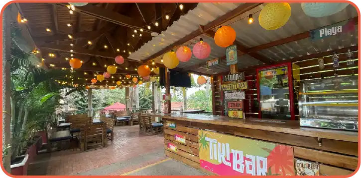 y una variedad de bebidas refrescantes, cócteles, cervezas y licores con costo adicional. La discoteca abre sus puertas de viernes a sábado y domingos en puente festivo.